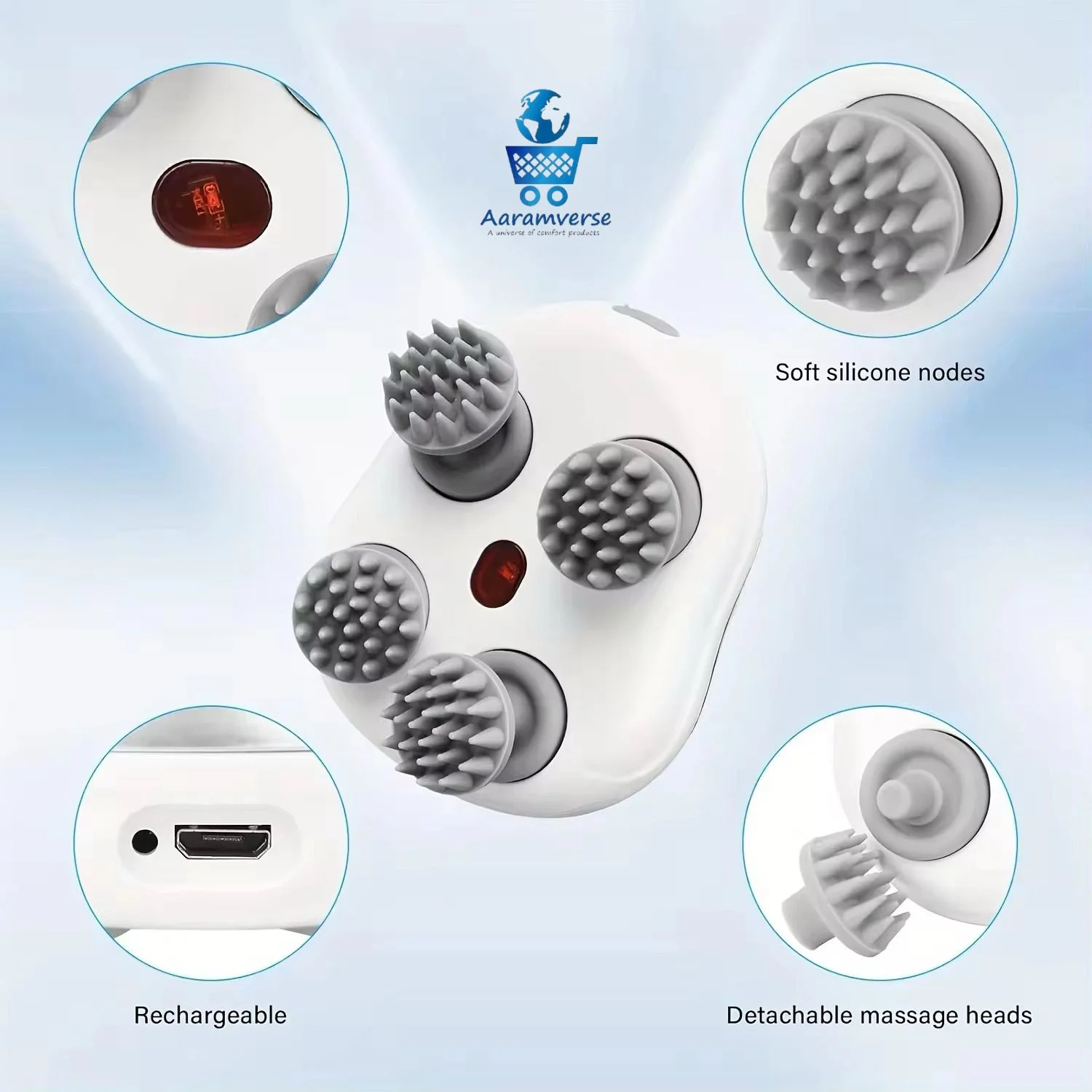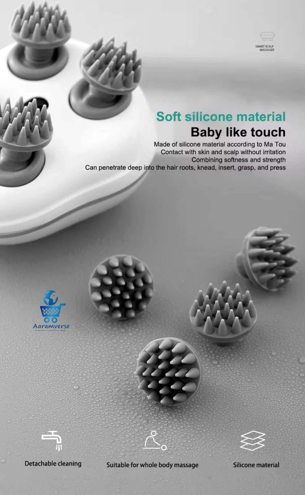 * গভীর ম্যাসাজ: এটি আঙুলের স্পর্শ অনুকরণ করে 3D নিডিং (kneading) ম্যাসাজ প্রদান করে, যা মাথার ত্বকের গভীরে পৌঁছে স্বস্তি আনে।